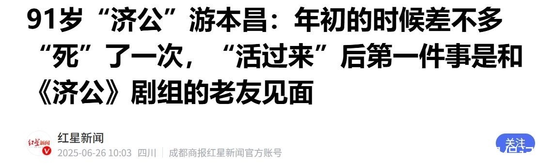 部分参考资料:九派新闻|游本昌力破“儿女不孝”传闻,计划进军短剧拍新济公系列红星新闻|91岁“济公”游本昌:年初的时候差不多“死”了一次,“活过来”后第一件事是和《济公》剧组的老友见面